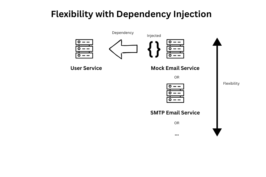 With injection, you can easily replace or extend behavior without rewriting business logic. For example, you could switch between a development stub and a production email provider.